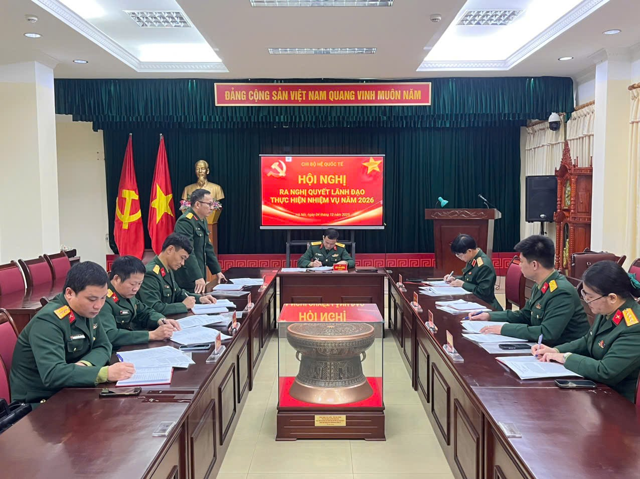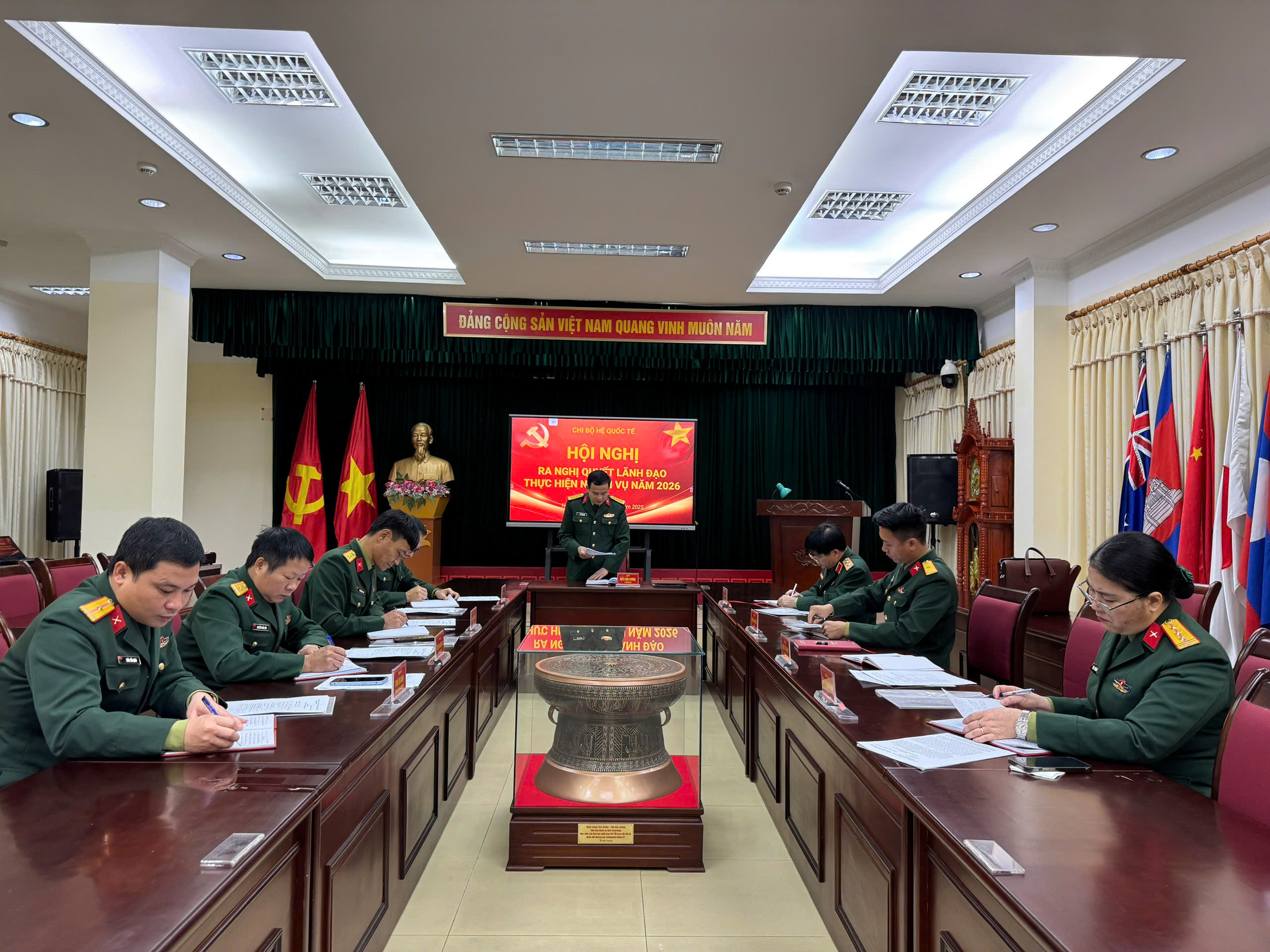 Sáng ngày 04/12/2025, Chi bộ Hệ Quốc tế tổ chức Hội nghị ra Nghị quyết lãnh đạo thực hiện nhiệm vụ năm 2026. Đồng chí Trung tướng, PGS, TS Lê Kim Cương, Ủy viên Đảng ủy, Phó Giám đốc Học viện dự và chỉ đạo Hội nghị.