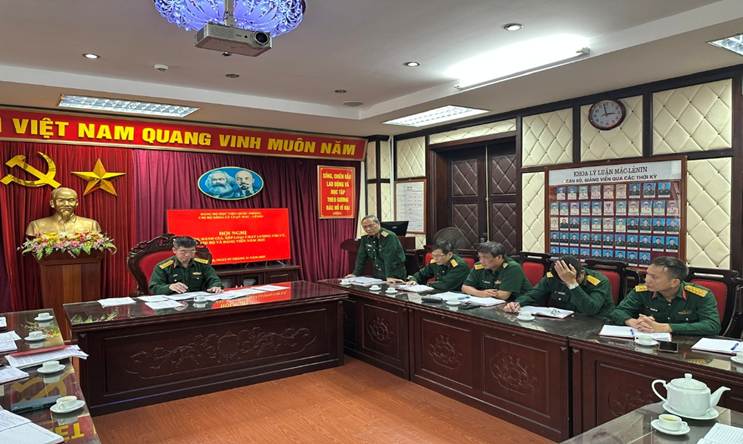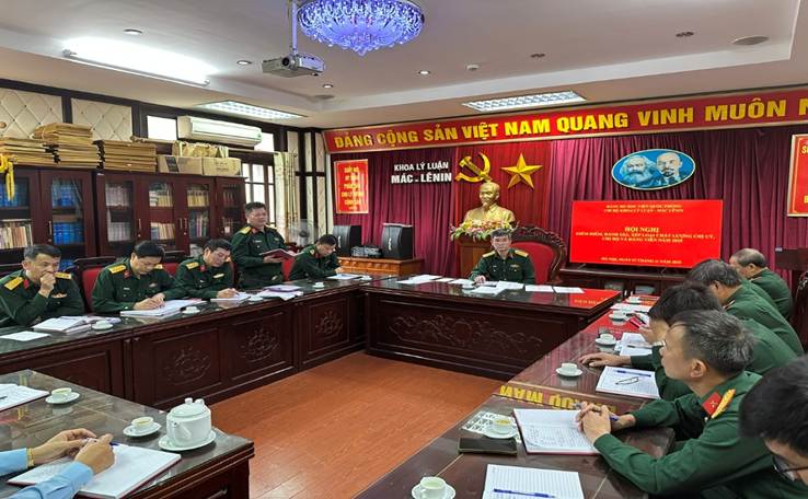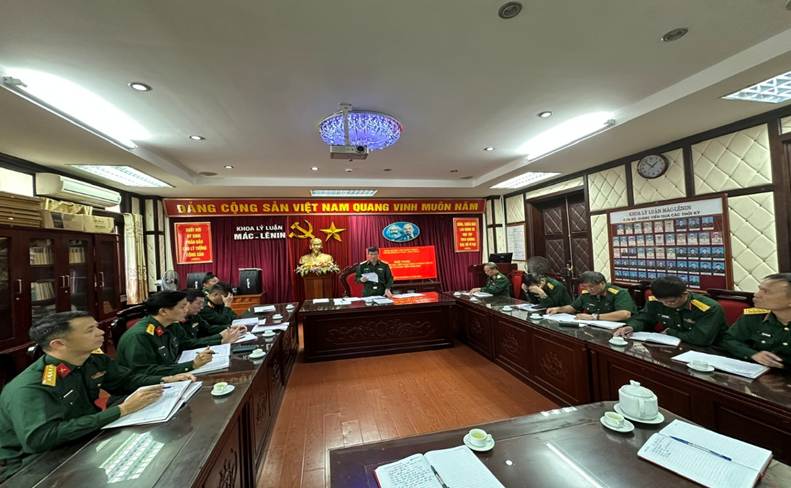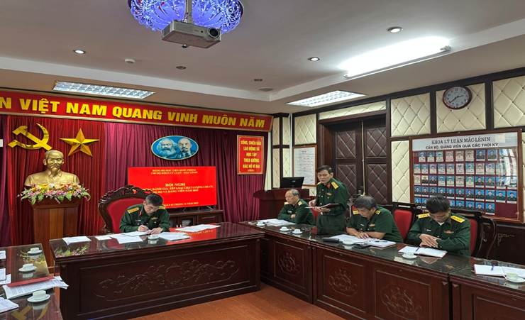 Thực hiện Hướng dẫn số 128/HD-CT ngày 21/10/2025 của Cục Chính trị về kiểm điểm, đánh giá, xếp loại chất lượng, khen thưởng tổ chức đảng, cán bộ, đảng viên năm 2025 và Kế hoạch công tác của Chi bộ Khoa; chiều ngày 07/11/2025, Chi bộ Khoa Lý luận Mác - Lênin đã tổ chức Hội nghị kiểm điểm, đánh giá, xếp loại chất lượng, khen thưởng tổ chức đảng, cán bộ và đảng viên năm 2025. Tham dự Hội nghị có toàn thể cán bộ, đảng viên trong Chi bộ.
