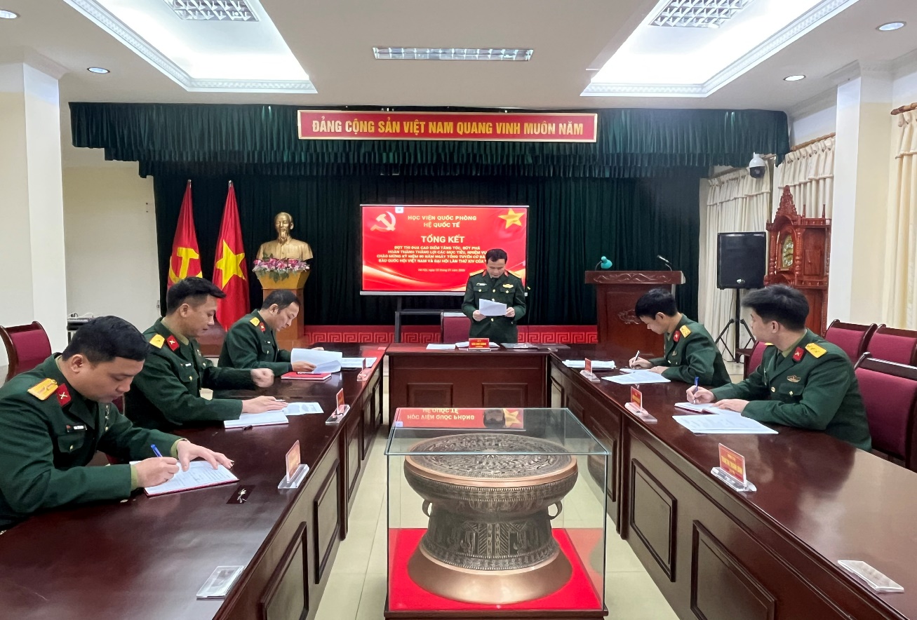 Trong không khí thi đua sôi nổi của toàn Đảng, toàn dân, toàn quân chào mừng Đại hội toàn quốc lần XIV của Đảng, thực hiện hướng dẫn của Cục Chính trị, ngày 21/01/2026, Hệ Quốc tế tổ chức tổng kết đợt thi đua cao điểm tăng tốc, bứt phá hoàn thành thắng lợi các mục tiêu, nhiệm vụ chào mừng kỷ niệm 80 năm Ngày Tổng tuyển cử đầu tiên bầu Quốc hội Việt Nam (06/01/1946 - 06/01/2026) và Đại hội lần thứ XIV của Đảng.