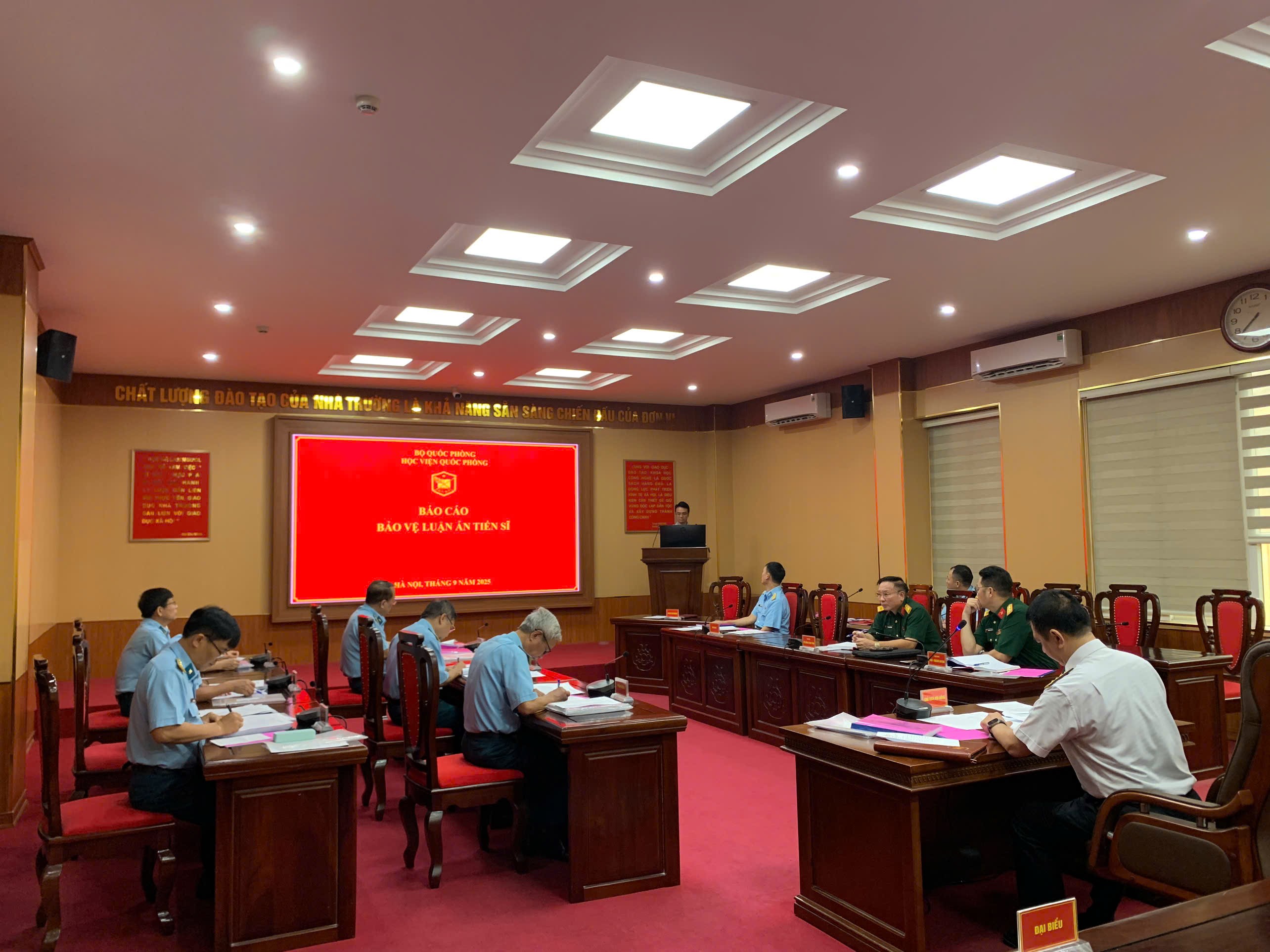 Thực hiện kế hoạch công tác tháng 9/2025 của Học viện, sáng ngày 29 tháng 9 năm 2025, Hội đồng khoa học đánh giá luận án cấp cơ sở đã tiến hành hội nghị để đánh giá luận án cho nghiên cứu sinh Trần Việt Cường, Khóa 30B. Đồng chí Đại tá, Phó Giáo sư, Tiến sĩ Lê Quốc Dũng, Chủ nhiệm Khoa Quân chủng, Chủ tịch Hội đồng chủ trì Hội nghị. Tham dự có đầy đủ các thành viên trong Hội đồng, thầy hướng dẫn, Chỉ huy Phòng Sau đại học, Hệ Sau đại học, giảng viên trong Khoa Quân chủng và các nghiên cứu sinh các khóa đang học tập tại Học viện.