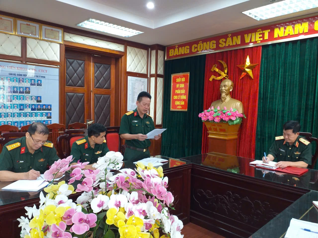 Quán triệt, tổ chức thực hiện nghiêm túc chỉ thị, mệnh lệnh huấn luyện của Giám đốc Học viện. Đẩy mạnh đổi mới, sáng tạo nâng cao chất lượng huấn luyện - đào tạo theo phương châm “Chất lượng đào tạo của nhà trường là khả năng sẵn sàng chiến đấu của đơn vị”, chủ trương của Đảng uỷ Học viện: “Chất lượng huấn luyện của Học viện Quốc phòng là khả năng lãnh đạo, tổ chức chỉ huy, sẵn sàng chiến đấu và chiến đấu thắng lợi của Quân đội” và chủ trương “03 thực chất”, “02 thiết thực”. Tổ chức huấn luyện cho các đối tượng theo đúng chương trình, kế hoạch bảo đảm chất lượng tốt. Thực hiện có nề nếp chế độ dự giảng, kiểm tra giảng, bồi dưỡng đội ngũ giảng viên, quan tâm tạo điều kiện để đội ngũ giảng viên được học tập, nghiên cứu đáp ứng yêu cầu nhiệm vụ.