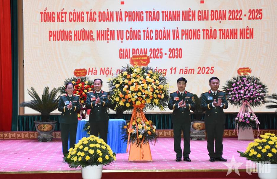Lãnh đạo Ban Thanh niên Quân đội tặng hoa chúc mừng hội nghị.