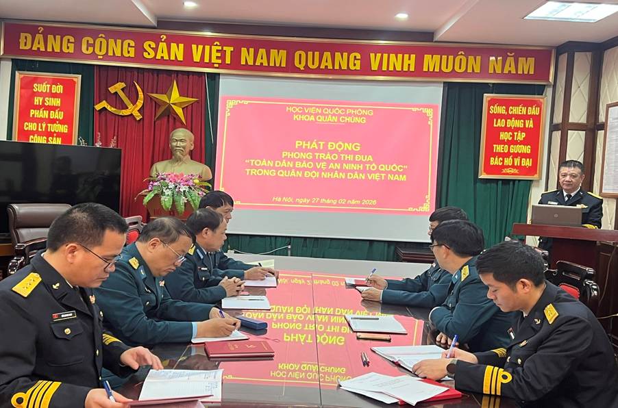 Thực hiện kế hoạch công tác tuần, chiều ngày 27/02/2025, Khoa Quân chủng tổ chức phát động đợt thi cao điểm chào mừng bầu cử đại biểu Quốc hội khóa XVI và đại biểu Hội đồng nhân dân các cấp nhiệm kỳ 2026 - 2031; chào mừng kỷ niệm 136 năm ngày sinh Chủ tịch Hồ Chí Minh (19/5/1890 - 19/5/2026). Dự Hội nghị, có đông đủ cán bộ giảng viên trong Khoa, đồng chí Đại tá, PGS, TS Lê Quốc Dũng Chủ nhiệm Khoa, chủ trì hội nghị đã tiến hành quán triệt, mục đích yêu cầu, nội dung và chỉ tiêu đợt thi đua.