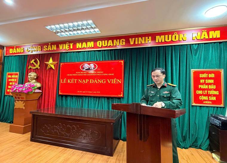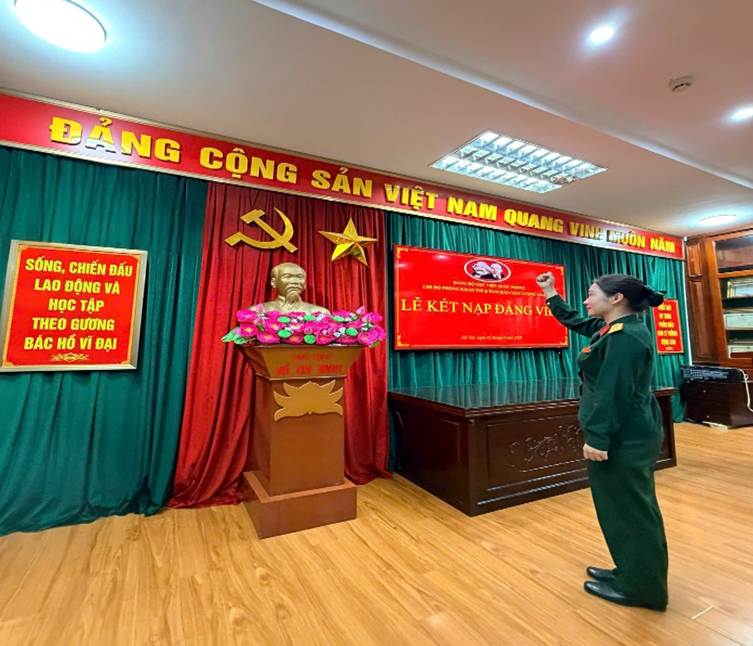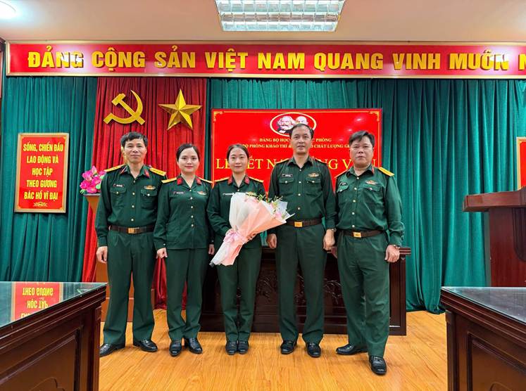 Sáng ngày 02/4/2026, tại Học viện Quốc phòng, Chi bộ Phòng Khảo thí & Đảm bảo chất lượng GD-ĐT đã tổ chức Lễ kết nạp Đảng viên cho quần chúng ưu tú Nguyễn Thị Phương Thảo. Buổi lễ không chỉ là dấu mốc quan trọng trong quá trình phấn đấu, rèn luyện của cá nhân đồng chí Nguyễn Thị Phương Thảo mà còn thể hiện sự quan tâm, chú trọng của Chi bộ trong công tác phát triển đảng viên, góp phần nâng cao năng lực lãnh đạo, sức chiến đấu của tổ chức Đảng.