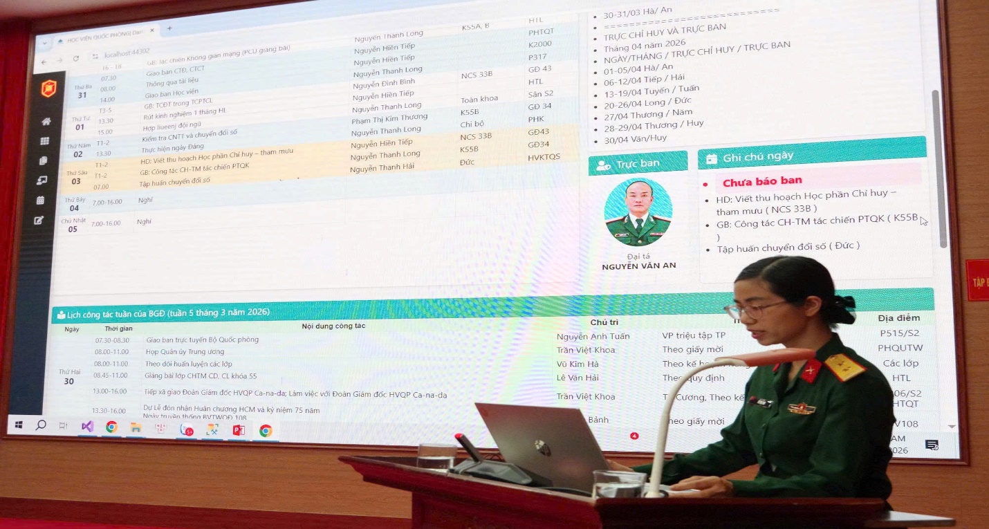 Hội nghị tập huấn là hoạt động thiết thực, góp phần tạo chuyển biến tích cực trong triển khai chuyển đổi số tại Học viện Quốc phòng năm 2026; thiết thực chào mừng kỷ niệm 50 năm Ngày truyền thống Học viện, góp phần xây dựng Học viện chính quy, hiện đại, đáp ứng yêu cầu xây dựng và bảo vệ Tổ quốc trong giai đoạn mới.