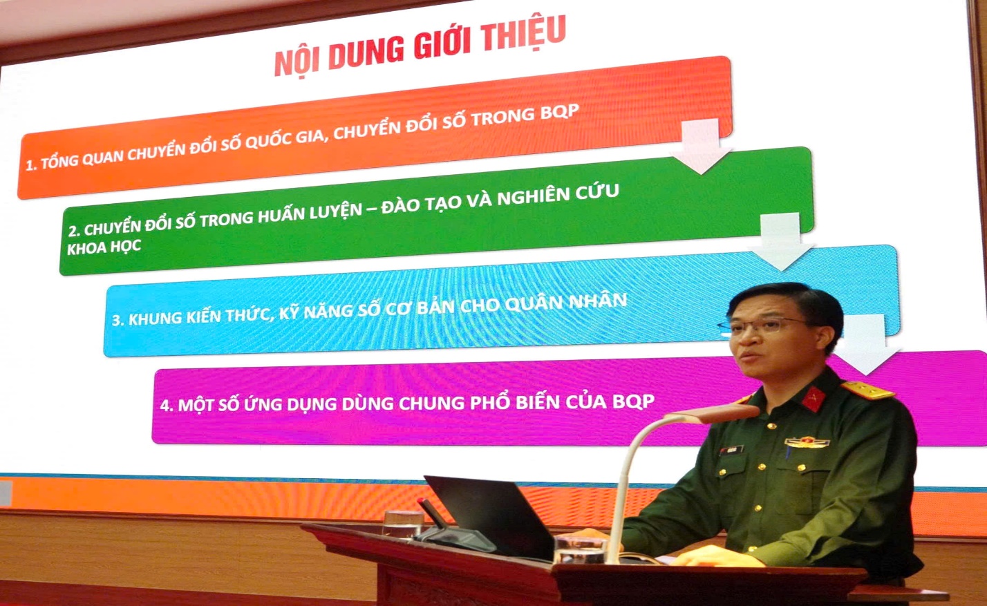 Hội nghị đã tập trung triển khai 02 chuyên đề trọng tâm. Trong đó, Chuyên đề 1: “Chuyển đổi số trong huấn luyện - đào tạo và nghiên cứu khoa học trong Học viện Quốc phòng” đã làm rõ những nội dung cơ bản về định hướng, yêu cầu và giải pháp thúc đẩy chuyển đổi số trong lĩnh vực giáo dục - đào tạo, nghiên cứu khoa học của Học viện.