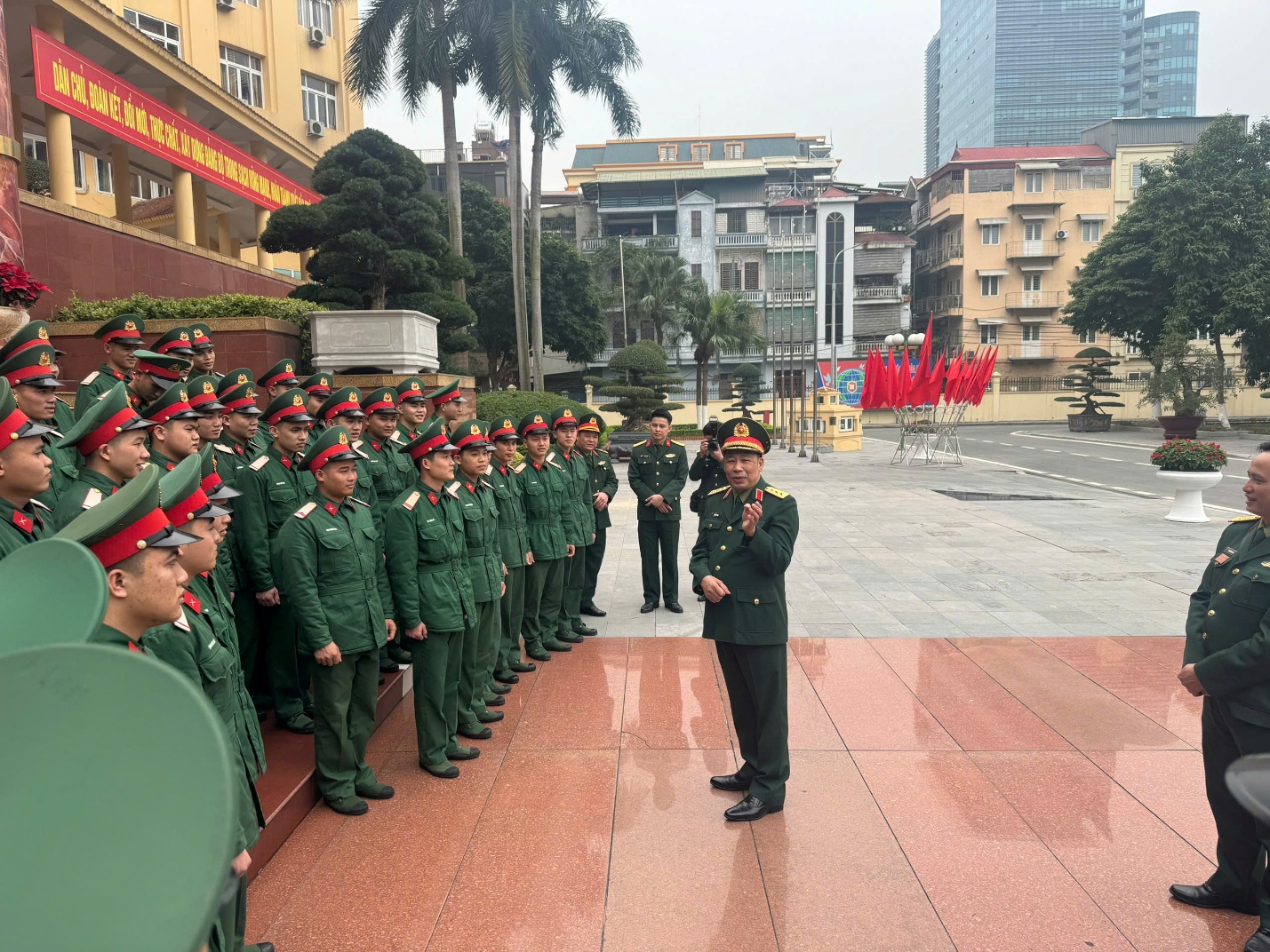 Ngày 27/01/2026, Học viện Quốc phòng tổ chức gặp mặt các đồng chí chiến sĩ hoàn thành nghĩa vụ quân sự trước khi xuất ngũ. Đồng chí Thượng tướng, PGS, TS Trần Việt Khoa, Ủy viên Trung ương Đảng, Ủy viên Quân ủy Trung ương, Giám đốc Học viện Quốc phòng chủ trì buổi gặp mặt. Tham dự buổi gặp mặt có các đồng chí trong Đảng uỷ Học viện, Chỉ huy Cơ quan Văn phòng cùng cán bộ, nhân viên và toàn thể các chiến sĩ xuất ngũ năm 2026.