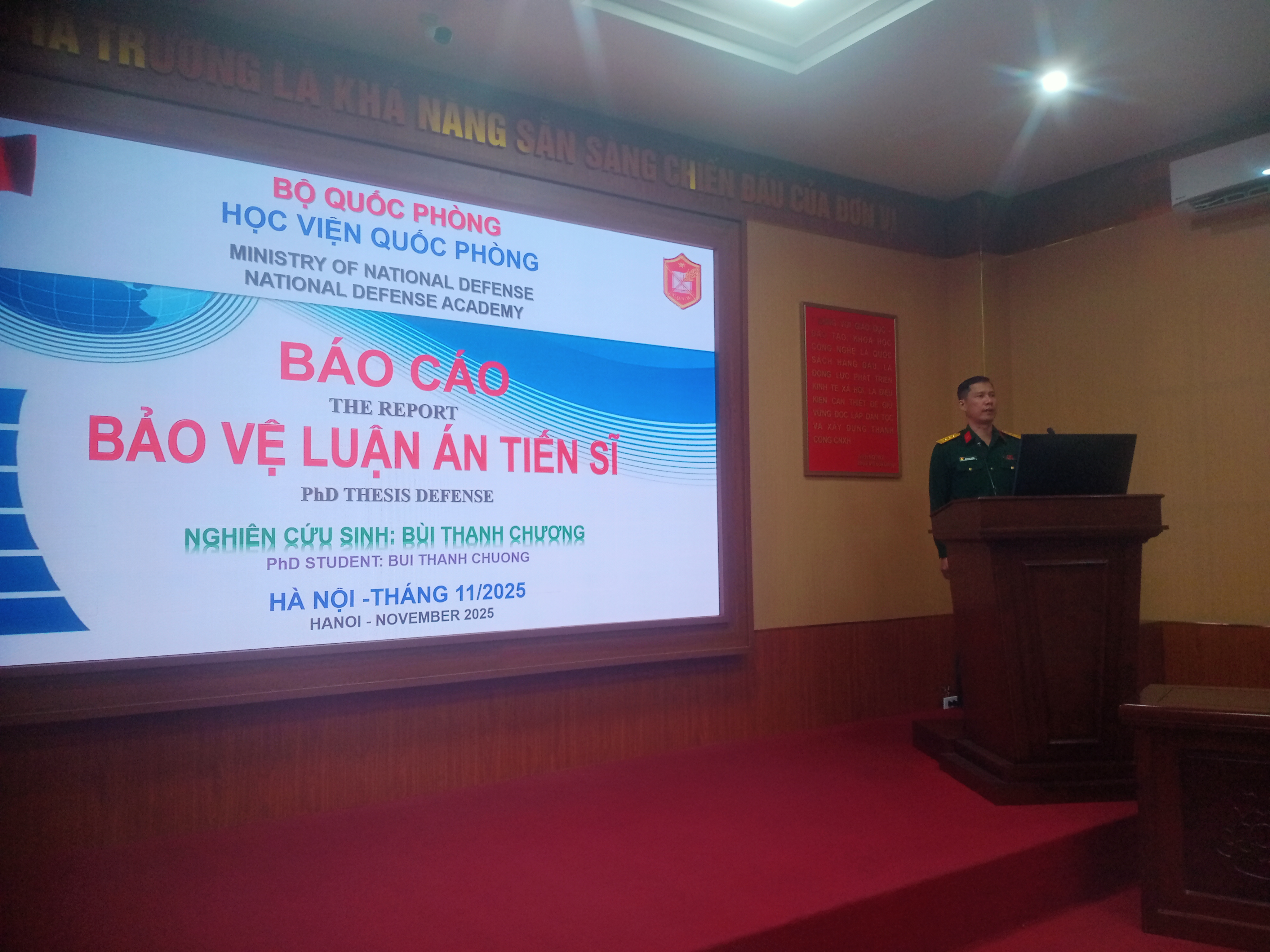 Quán triệt Nghị quyết lãnh đạo thực hiện nhiệm vụ năm học 2024 - 2025 của Đảng ủy, Ban Giám đốc Học viện; thực hiện Kế hoạch công tác tháng 11 năm 2025 của Học viện. Ngày 17 tháng 11 năm 2025, Khoa Binh chủng tổ chức Hội nghị thông qua báo cáo bảo vệ luận án Tiến sỹ cho NCS Bùi Thanh Chương khóa 31. Hội nghị do đồng chí Đại tá, TS Phạm Đình Việt Mạnh, Chủ nhiệm Khoa chủ trì, tham dự còn có đông đủ của cán bộ, giảng viên trong Khoa và thầy hướng dẫn.