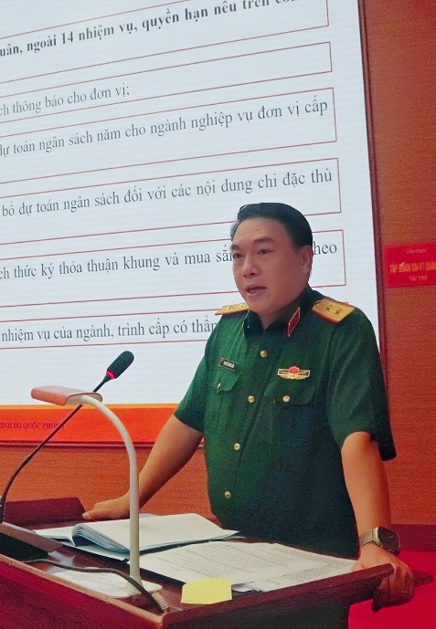 Trung tướng Nguyễn Hồng Lâm, Cục trưởng Cục Tài chính, Bộ Quốc phòng giới thiệu nội dung bài giảng cho lớp CH-TM CD, CL Khóa 54