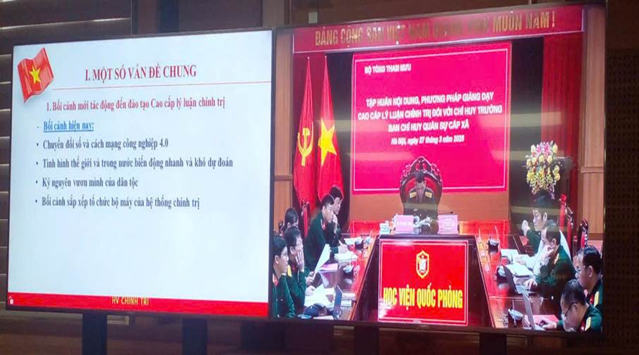 Để chuẩn bị tốt cho công tác đào tạo cao cấp lý luận chính trị cho đối tượng chỉ huy trưởng ban chỉ huy quân sự xã phường, Cục Quân huấn - Nhà trường đã tổ chức tập huấn nội dung, phương pháp giảng dạy cho giảng viên các học viện, nhà trường tham gia giảng dạy cao cấp lý luận chính trị cho đối tượng chỉ huy trưởng ban chỉ huy quân sự xã phường từ 25 đến 27 tháng 3 năm 2026. Với vai trò là một khoa chủ công trong đào tạo cao cấp lý luận chính trị cho đối tượng tại Học viện Quốc phòng, Khoa lý luận Mác - Lênin đã tổ chức cho 100% các giảng viên tham gia tập huấn.