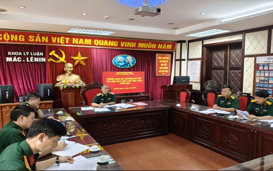 Nhằm bảo đảm chất lượng biên soạn tài liệu dạy học cấp Học viện, từng bước chuẩn hóa hệ thống tài liệu phục vụ giảng dạy ở Học viện, đáp ứng yêu cầu huấn luyện, đào tạo và nghiên cứu khoa học của Học viện Quốc phòng trong thời kỳ mới. Chiều ngày 21/4/2026, Khoa Lý luận Mác - Lênin đã tổ chức Hội nghị khoa học thông qua đề cương chi tiết tài liệu dạy học cấp Học viện triển khai biên soạn năm 2026, do cán bộ, giảng viên của Khoa chủ trì biên soạn. Hội nghị do đồng chí Thiếu tướng, PGS, TS Vũ Văn Nhiên, Chủ nhiệm khoa chủ trì, với sự tham gia đông đủ của các giảng viên trong Khoa.