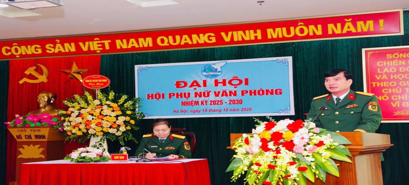 Sáng nay, ngày 15/10/2025 tại Học viện Quốc phòng Hội phụ nữ Văn phòng tổ chức Đại hội nhiệm kỳ 2025 - 2030 với phương châm “Đoàn kết - Trí tuệ - Kỷ cương - dân chủ - đổi mới - phát triển. Tới dự có đồng chí: Nguyễn Tiến Thi, Bí thư Đảng ủy, đồng chí Ngô Văn Sáng, Phó Bí thư Đảng ủy, Chánh Văn phòng, dự và chỉ đạo.