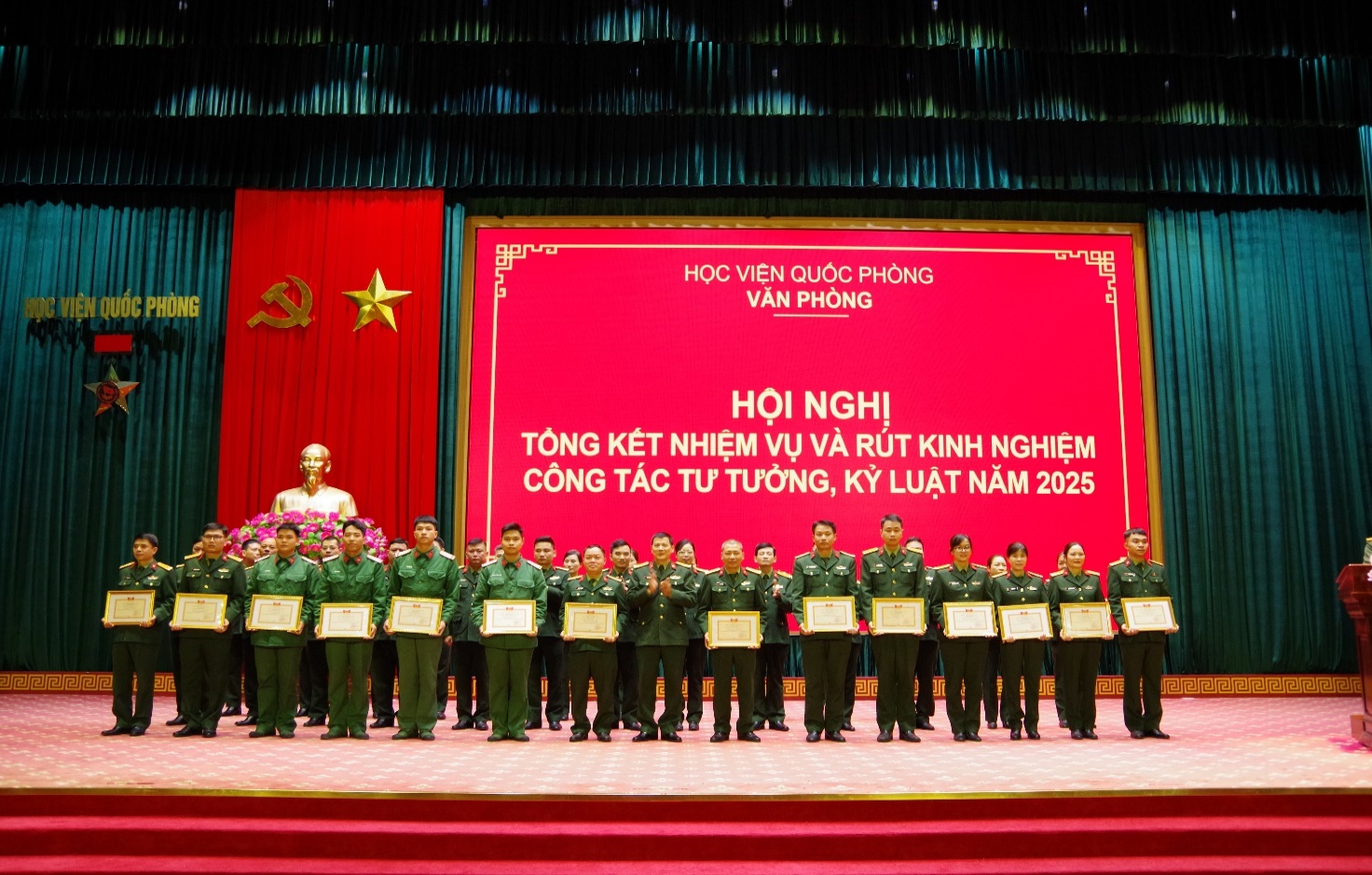 Kết quả cụ thể: Năm 2025, Văn phòng được tặng cờ thi đua của Học viện, 03 tập thể được tặng danh hiệu đơn vị Quyết thắng, 05 tập thể được tặng danh hiệu đơn vị Tiên tiến, 01 tập thể được tặng danh hiệu đơn vị Văn hóa, 15 đồng chí được tặng danh hiệu CSTĐ cơ sở, 45 đồng chí được tặng danh hiệu CSTT và nhiều phần thưởng khác.