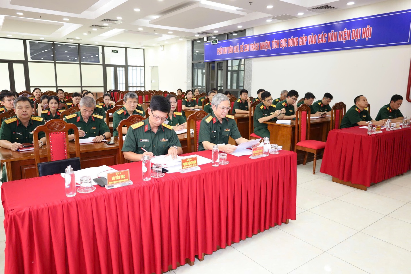 Đồng chí Đại tá, TS Vũ Ngọc Thủy, Ủy viên Đảng ủy Học viện, Phó Bí thư Đảng ủy, Viện trưởng chủ trì hội nghị thảo luận