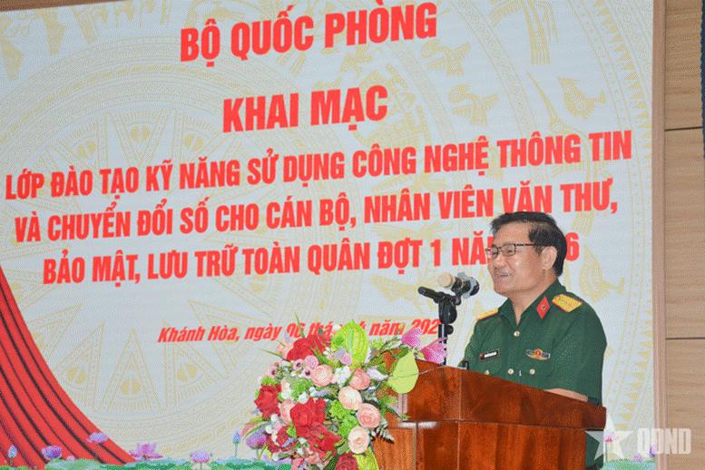 Thực hiện Kế hoạch 2221/KH-VP ngày 10/3/2026 của Văn phòng Bộ Quốc phòng; sáng ngày 06/4/2026, Văn phòng Bộ Quốc phòng phối hợp với Trường Sĩ quan Thông tin tổ chức Khai mạc Lớp Đào tạo kỹ năng sử dụng CNTT cho cán bộ, nhân viên Văn thư, bảo mật, lưu trữ toàn quân (đợt 1) năm 2026. Thừa ủy quyền của Bộ Quốc phòng, Đại tá, TS Nguyễn Danh Khoa – Phó hiệu trưởng Trường Sĩ quan Thông tin chủ trì khai mạc. Tham dự khai mạc có đại diện Văn phòng Bộ Quốc phòng cùng 112 cán bộ, nhân viên văn thư, lưu trữ trong toàn quân. Học viện Quốc phòng cử đồng chí Thiếu tá QNCN Doãn Thị Thùy Linh, nhân viên Ban Văn thư, lưu trữ thuộc cơ quan Văn phòng tham gia lớp học.