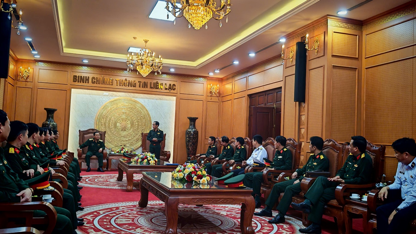 Tại buổi làm việc, đoàn đã được lãnh đạo, chỉ huy Binh chủng Thông tin liên lạc giới thiệu khái quát về quá trình xây dựng, chiến đấu và trưởng thành của Binh chủng; chức năng, nhiệm vụ, tổ chức lực lượng; đặc biệt là vai trò, vị trí của lực lượng thông tin liên lạc trong bảo đảm chỉ huy, hiệp đồng tác chiến trong các loại hình chiến dịch hiện nay. Đồng thời, đoàn được nghe trao đổi về những nội dung cơ bản trong xây dựng hệ thống thông tin liên lạc vững chắc, thông suốt, kịp thời, đáp ứng yêu cầu nhiệm vụ trong mọi tình huống.