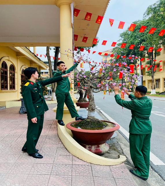 Trong những ngày giáp Tết Nguyên đán Bính Ngọ năm 2026, không khí tại Trung đội Vệ binh, Văn phòng trở lên rộn ràng, ấm áp và tràn đầy sắc xuân. Cán bộ, quân nhân chuyên nghiệp, hạ sĩ quan chiến sĩ trong đơn vị đang tích cực tham gia các hoạt động chỉnh trang doanh trại, trang trí cảnh quan môi trường, chuẩn bị chu đáo các điều kiện phục vụ đón tết.