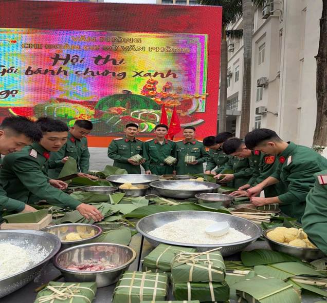 Song song với hình thức và hoạt động trang trí Tết, đơn vị còn chú trọng bảo đảm vật chất đời sống tinh thần cho chiến sĩ thông qua Hội thi gói bánh chưng xanh - Đây là nét đẹp truyền thống mang đậm đà bản sắc dân tộc. Hội thi cũng là dịp để mỗi cán bộ, quân nhân chuyên nghiệp, hạ sĩ quan chiến sĩ phát huy tinh thần trách nhiệm, tính sáng tạo và sự đoàn kết trong tập thể. Trong quá cùng nhau gói bánh chưng đã thắt chặt tình đồng chí, động đội tạo không khí vui tươi, phấn khởi sau những giờ công tác, rèn luyện vất vả.